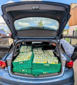 A separate thank you to Mary for literally filling her car with eggs from Asda who donated a pallet load! [insert caption here, but not eggs-cellent or eggs-citing please… Entries welcome!]