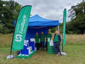 Saturday 2nd (the day after the last update) was quite a busy day! Alongside our team at Chantry who operate week in week out on Saturdays, Katherine and I were joined by volunteers throughout the day, manning our stall at the Norwich Yoga Festival as the charity partner. We were incredibly grateful to borrow Waveney’s gazebo and we tested our new feather flag banners (see attached). We made connections within the first hour with Kraken Bakes who make gluten and dairy free tray-bakes – they not only offered (and gave!) us their leftover cakes, but also promised future cake-based support
