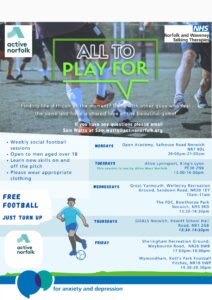 I have previously shared these as I’ve come across them; MIND run training sessions on all sorts of topics related to wellbeing but also socials across the county, so sharing the latest timetables (3 attachments): ‘Remember, all our socials are open to anyone 16+. You do not need to be registered with NHS Norfolk and Waveney Talking Therapies, just turn up at one of our socials where one of our friendly Community Team will welcome you in. Whether it’s a coastal or town walk, café meet up or Dungeons and Dragons session, we’d love to meet you!’