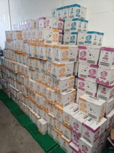 Rachel printed the translations and we had a brilliant team in on Friday afternoon (including two one-off volunteers from a local care home who had offered their time at just the right moment!), unboxing, labelling in English and crating up mixed crates ready for packing into food parcels. We’ve also shared the mash stash with Yarmouth and Gorleston foodbanks so spreading the love.